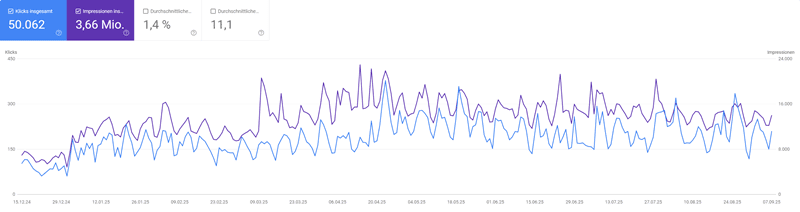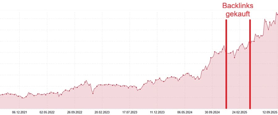 Um dir den Effekt und die Wichtigkeit von Backlinks in der Offpage-Optimierung zu verdeutlichen, haben wir hier eine kleine Case Study für dich. Ein Kunde hat im Zeitraum zwischen Mitte Dezember 2024 und April 2025 eine Linkbuilding Kampagne mit uns gestartet und in diesem Zeitraum 16 Backlinks von themenrelevanten, starken Seiten aufgebaut.